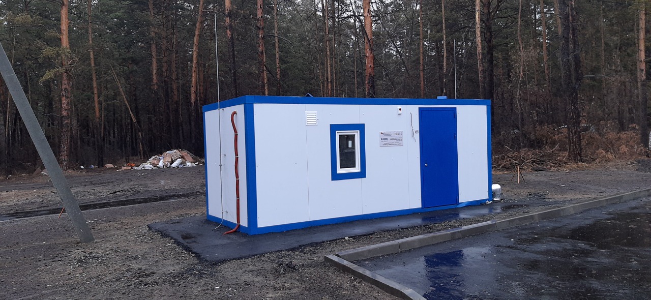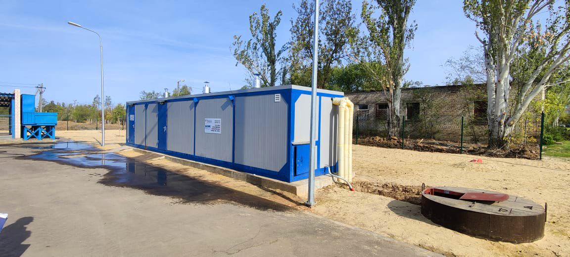 - оборудование в блок-контейнере: насосы-дозаторы, контактные резервуары (Контактные резервуары выполнены в виде горизонтальных цилиндрических резервуаров с подводящими и отводящими трубопроводами сточных вод, подводящими трубопроводами раствора дезинфектанта и воздуха, оборудованы системой барботажных трубопроводов, сорбционными фильтрами для очистки отработанного воздуха и сигнальными поплавковыми выключателями.), компрессоры, шкаф управления, система автоматизации работы установки.